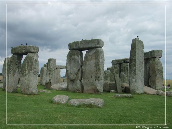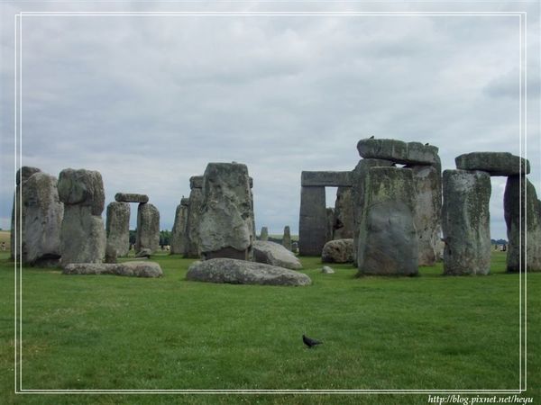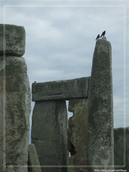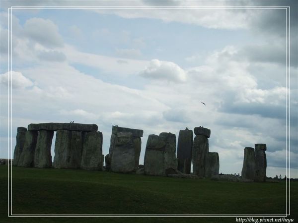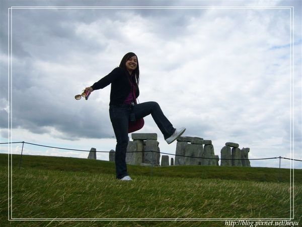 嘻嘻,也有傳說這是外星人的傑作哦!我個人對外星人非常有興趣,也傾向相信這是外星人留給地球人的暗號,不過究竟是代表甚麼意思咧?眾說紛紜。題外話,我們從巴斯到巨石陣的路上還經過了大名鼎鼎的白馬圖像以及麥田圈哦,尤其那白馬圖真的很酷耶,可惜我們並沒有稍做停留,否則我就能夠拍個幾張照片與大家分享啦!!感覺上英國是個外星人很愛來觀光的地方,而且不是來看看而已,還會淘氣地在地面上留個到此一遊的簽名紀念。