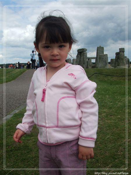 聽聞我們要到巨石陣觀光時,識途老鳥們告誡我們這將是一趟很無趣的行程,畢竟才幾塊大石頭有甚麼好耗上一兩個小時呢?殊不知我們這趟旅程著實變成了我們的獵豔之旅,好不愉快!看帥哥的看帥哥、看小孩的看小孩,每個人都是大飽眼福、滿載而歸啊!以下就是我們幾個超戀童(但不變態)的阿姨們(其實內心還想當姊姊)所拍到的超正小蘿莉,真是霹靂無敵可愛的啦!25個月大,是個歐亞混血兒!